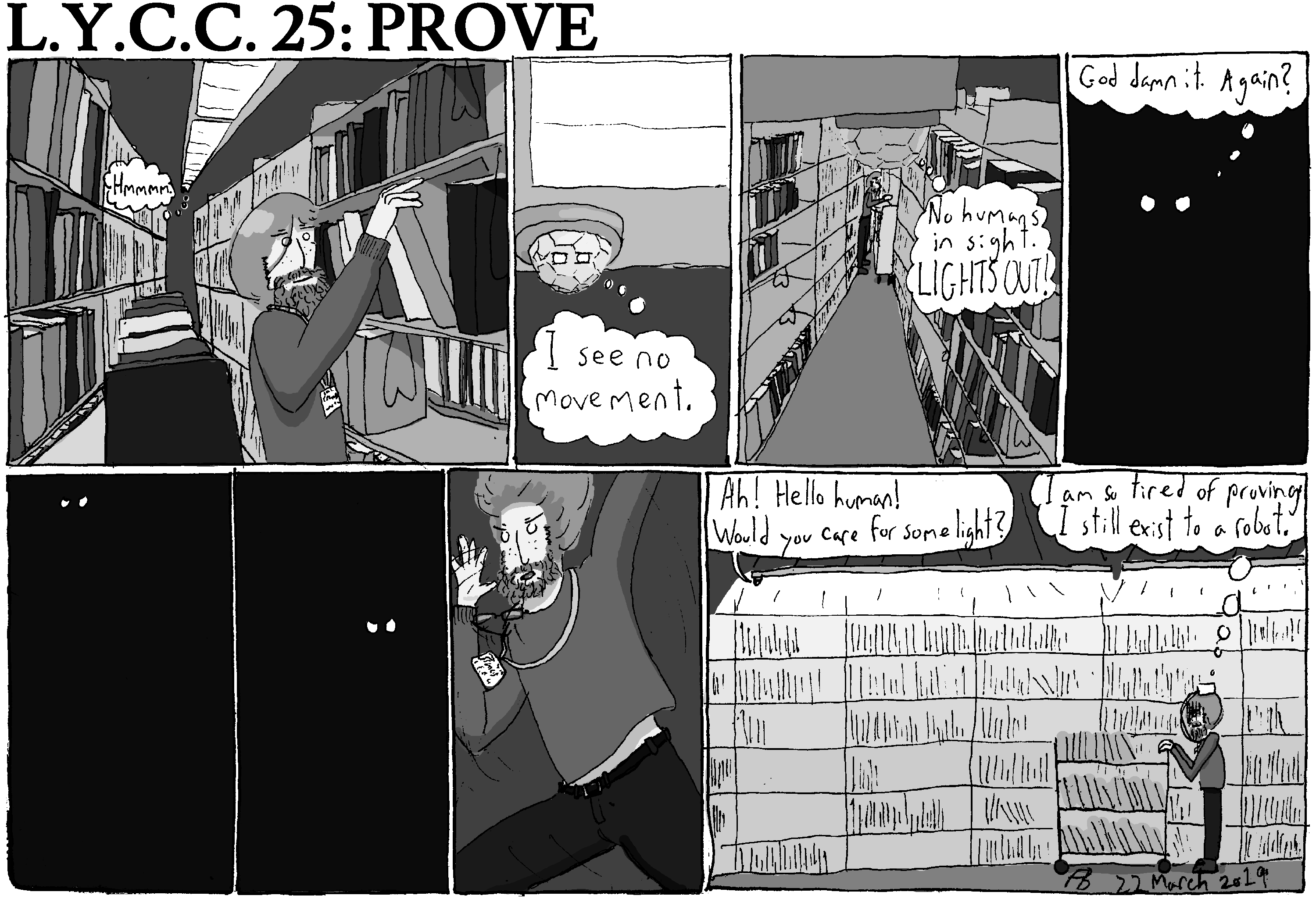 Want a more convenient way to read this comic? Want to monetarily support this comic and more things like it? Want to read some brand new, previously unpublished Francis Bass scribbles? Great! You can buy a downloadable, PDF version of L.Y.C.C. at Gumroad or Itch.io. In addition to all of L.Y.C.C., this book includes “Last Summer,” a shorter series of comics made over the summer following my graduation, as well as older proof-of-concept comics and a quick step-by-step description of my process for creating L.Y.C.C.