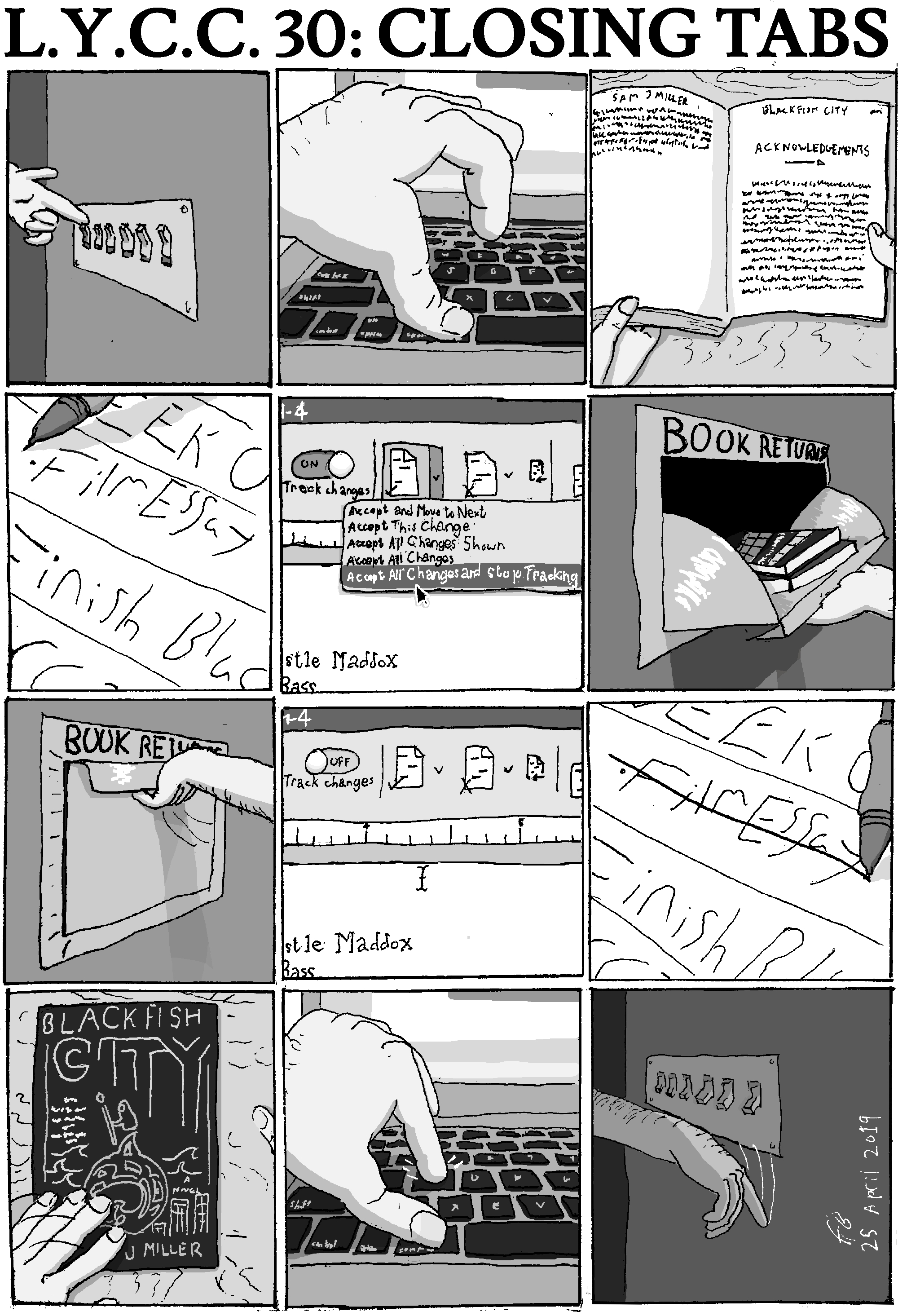 Blog housekeeping: Whew! That was a lot, huh! I may end up releasing an ebook version of LYCC with some extra stuff, or this may be its final form. Regardless, what’s online now will always be available for free, and I will hopefully do more sequential art stuff sometime in the future. That could mean a year from now, or five, but it’s definitely something I’ve enjoyed, so yeah. This isn’t the last of my comicking! I may also post sort of doodley little one-off autobio comics and drawings on twitter from time to time? so maybe follow me there? And in case you missed it, I posted the proto-version of LYCC up there a couple months ago, so you can check that out if you want a little more autobio comic content right now.